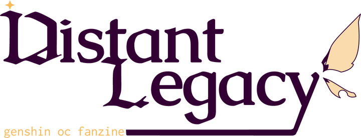 Distant Legacy is a SFW, PG-13 Genshin Impact zine that aims to showcase original character designs existing across Teyvat's timeline.All proceeds of Distant Legacy will be donated to charity. This A5-sized zine will be available both as a physical zine and a digital PDF. The zine is planned to feature 60+ pages of multifaceted OCs that would be a collaboration between 20-22 page artists, 4-6 merch artists and 8 writers.